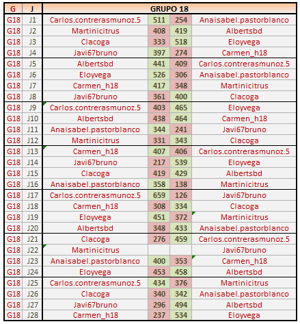 Deja un comentarioEn está página se irán publicando los resultados de las diferentes partidas, siendo ambos jugadores los responsables de subirlos, o comprobando que ya hayan sido subidos, insertando un COMENTARIO en la parte inferior de la pantalla (opción «Deja tu comentario«), indicando el nombre de los dos jugadores y los puntos obtenidos en la partida.