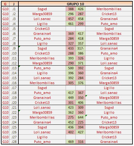 Deja un comentarioEn está página se irán publicando los resultados de las diferentes partidas, siendo ambos jugadores los responsables de subirlos, o comprobando que ya hayan sido subidos, insertando un COMENTARIO en la parte inferior de la pantalla (opción «Deja tu comentario«), indicando el nombre de los dos jugadores y los puntos obtenidos en la partida.