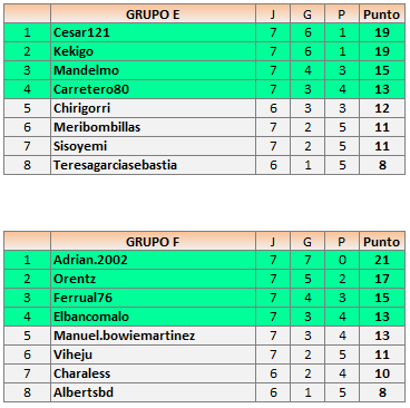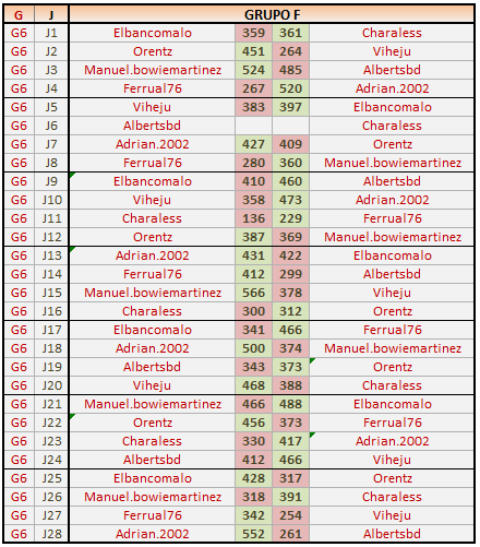 Deja un comentarioEn está página se irán publicando los resultados de las diferentes partidas, siendo ambos jugadores los responsables de subirlos, o comprobando que ya hayan sido subidos, insertando un COMENTARIO en la parte inferior de la pantalla (opción «Deja tu comentario«), indicando el nombre de los dos jugadores y los puntos obtenidos en la partida.