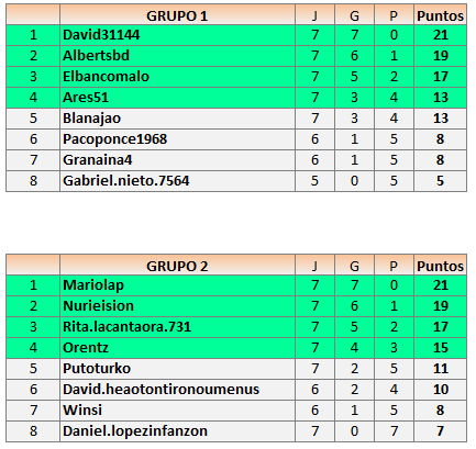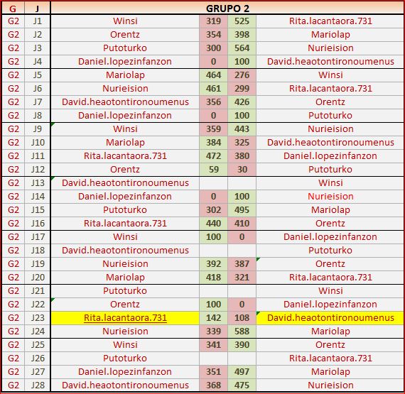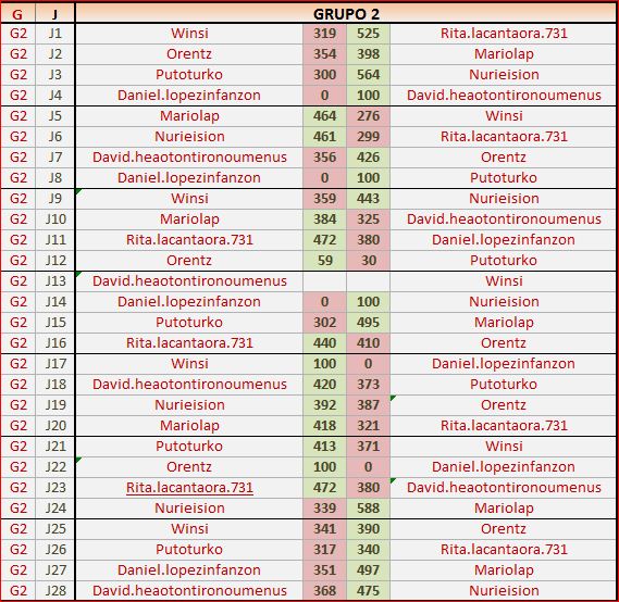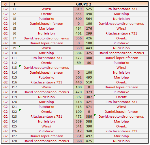 Deja un comentarioEn está página se irán publicando los resultados de las diferentes partidas, siendo ambos jugadores los responsables de subirlos, o comprobando que ya hayan sido subidos, insertando un COMENTARIO en la parte inferior de la pantalla (opción «Deja tu comentario«), indicando el nombre de los dos jugadores y los puntos obtenidos en la partida.