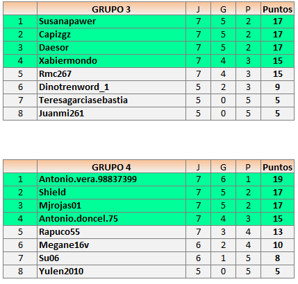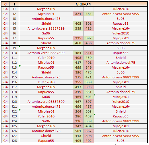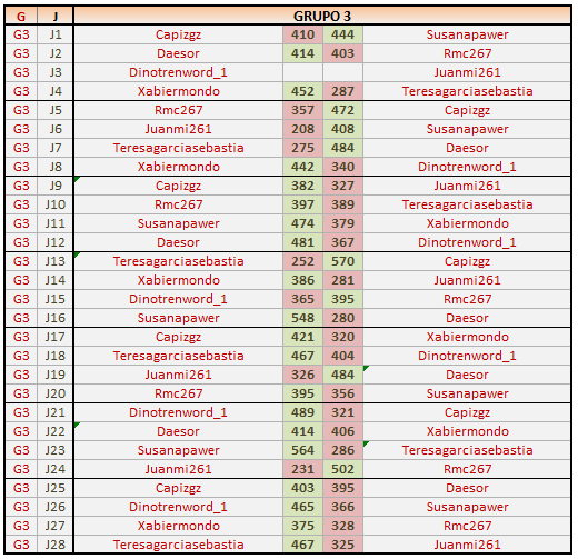 Deja un comentarioEn está página se irán publicando los resultados de las diferentes partidas, siendo ambos jugadores los responsables de subirlos, o comprobando que ya hayan sido subidos, insertando un COMENTARIO en la parte inferior de la pantalla (opción «Deja tu comentario«), indicando el nombre de los dos jugadores y los puntos obtenidos en la partida.