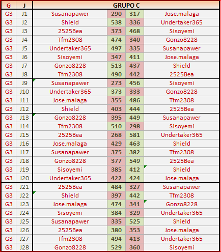 Deja un comentarioEn está página se irán publicando los resultados de las diferentes partidas, siendo ambos jugadores los responsables de subirlos, o comprobando que ya hayan sido subidos, insertando un COMENTARIO en la parte inferior de la pantalla (opción «Deja tu comentario«), indicando el nombre de los dos jugadores y los puntos obtenidos en la partida.