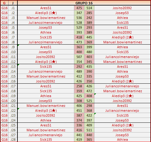 En está página se irán publicando los resultados de las diferentes partidas, siendo ambos jugadores los responsables de subirlos, o comprobando que ya hayan sido subidos, insertando un COMENTARIO en la parte inferior de la pantalla (opción «Deja tu comentario«), indicando el nombre de los dos jugadores y los puntos obtenidos en la partida.