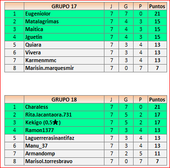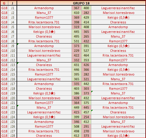 Deja un comentarioEn está página se irán publicando los resultados de las diferentes partidas, siendo ambos jugadores los responsables de subirlos, o comprobando que ya hayan sido subidos, insertando un COMENTARIO en la parte inferior de la pantalla (opción «Deja tu comentario«), indicando el nombre de los dos jugadores y los puntos obtenidos en la partida.