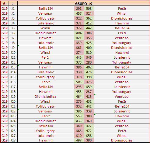 Deja un comentarioEn está página se irán publicando los resultados de las diferentes partidas, siendo ambos jugadores los responsables de subirlos, o comprobando que ya hayan sido subidos, insertando un COMENTARIO en la parte inferior de la pantalla (opción «Deja tu comentario«), indicando el nombre de los dos jugadores y los puntos obtenidos en la partida.
