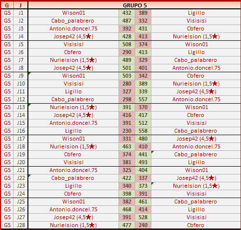 Deja un comentarioEn está página se irán publicando los resultados de las diferentes partidas, siendo ambos jugadores los responsables de subirlos, o comprobando que ya hayan sido subidos, insertando un COMENTARIO en la parte inferior de la pantalla (opción «Deja tu comentario«), indicando el nombre de los dos jugadores y los puntos obtenidos en la partida.