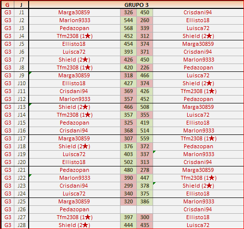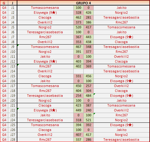 Deja un comentarioEn está página se irán publicando los resultados de las diferentes partidas, siendo ambos jugadores los responsables de subirlos, o comprobando que ya hayan sido subidos, insertando un COMENTARIO en la parte inferior de la pantalla (opción «Deja tu comentario«), indicando el nombre de los dos jugadores y los puntos obtenidos en la partida.