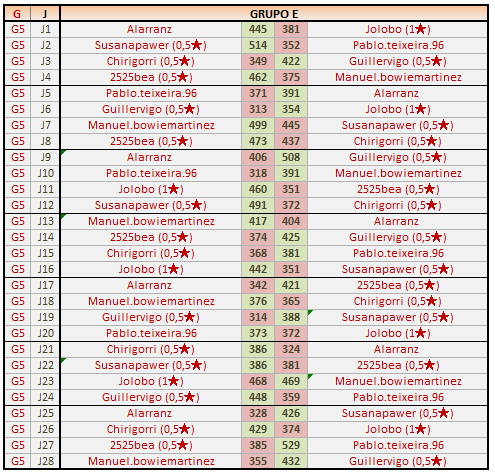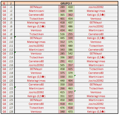 Deja un comentarioEn está página se irán publicando los resultados de las diferentes partidas, siendo ambos jugadores los responsables de subirlos, o comprobando que ya hayan sido subidos, insertando un COMENTARIO en la parte inferior de la pantalla (opción «Deja tu comentario«), indicando el nombre de los dos jugadores y los puntos obtenidos en la partida.