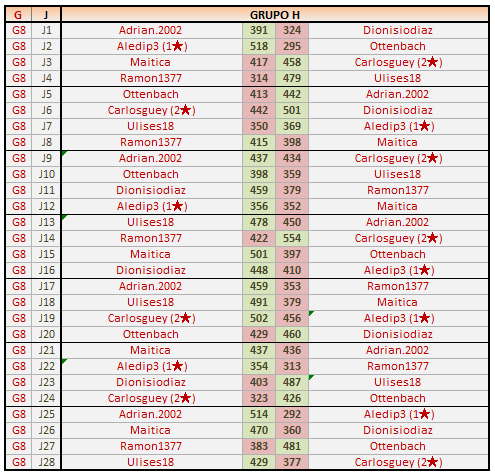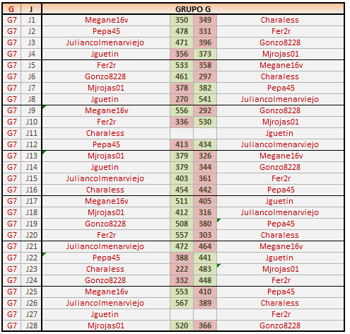 Deja un comentarioEn está página se irán publicando los resultados de las diferentes partidas, siendo ambos jugadores los responsables de subirlos, o comprobando que ya hayan sido subidos, insertando un COMENTARIO en la parte inferior de la pantalla (opción «Deja tu comentario«), indicando el nombre de los dos jugadores y los puntos obtenidos en la partida.