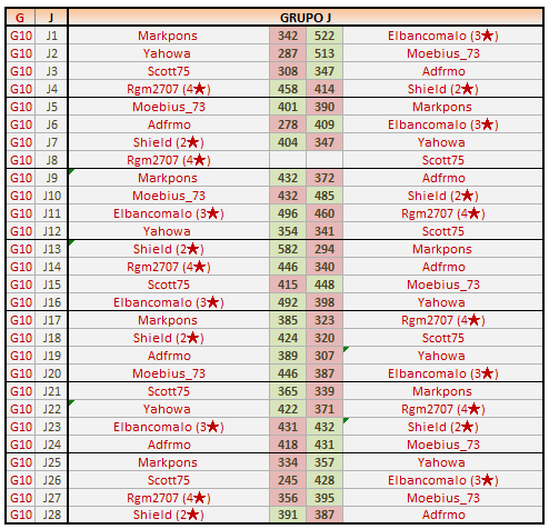 Deja un comentarioEn está página se irán publicando los resultados de las diferentes partidas, siendo ambos jugadores los responsables de subirlos, o comprobando que ya hayan sido subidos, insertando un COMENTARIO en la parte inferior de la pantalla (opción «Deja tu comentario«), indicando el nombre de los dos jugadores y los puntos obtenidos en la partida.