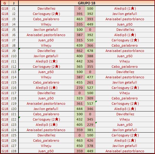 Deja un comentarioEn está página se irán publicando los resultados de las diferentes partidas, siendo ambos jugadores los responsables de subirlos, o comprobando que ya hayan sido subidos, insertando un COMENTARIO en la parte inferior de la pantalla (opción «Deja tu comentario«), indicando el nombre de los dos jugadores y los puntos obtenidos en la partida.