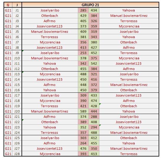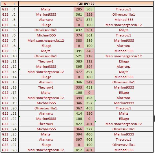 Deja un comentarioEn está página se irán publicando los resultados de las diferentes partidas, siendo ambos jugadores los responsables de subirlos, o comprobando que ya hayan sido subidos, insertando un COMENTARIO en la parte inferior de la pantalla (opción «Deja tu comentario«), indicando el nombre de los dos jugadores y los puntos obtenidos en la partida.
