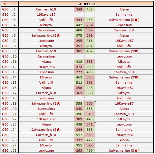 Deja un comentarioEn está página se irán publicando los resultados de las diferentes partidas, siendo ambos jugadores los responsables de subirlos, o comprobando que ya hayan sido subidos, insertando un COMENTARIO en la parte inferior de la pantalla (opción «Deja tu comentario«), indicando el nombre de los dos jugadores y los puntos obtenidos en la partida.