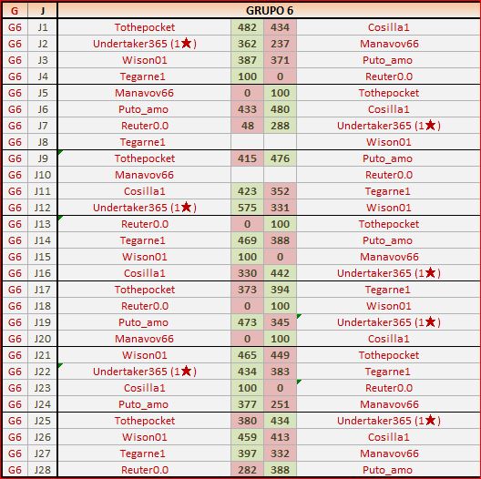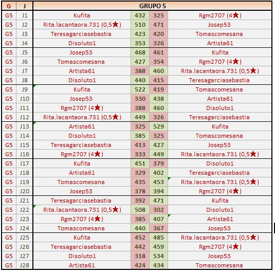 Deja un comentarioEn está página se irán publicando los resultados de las diferentes partidas, siendo ambos jugadores los responsables de subirlos, o comprobando que ya hayan sido subidos, insertando un COMENTARIO en la parte inferior de la pantalla (opción «Deja tu comentario«), indicando el nombre de los dos jugadores y los puntos obtenidos en la partida.