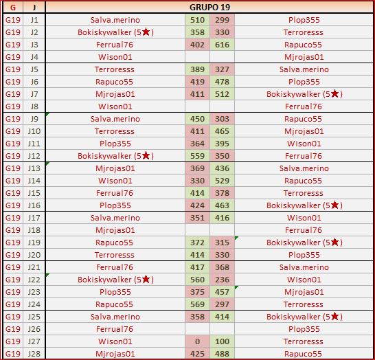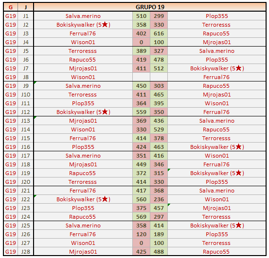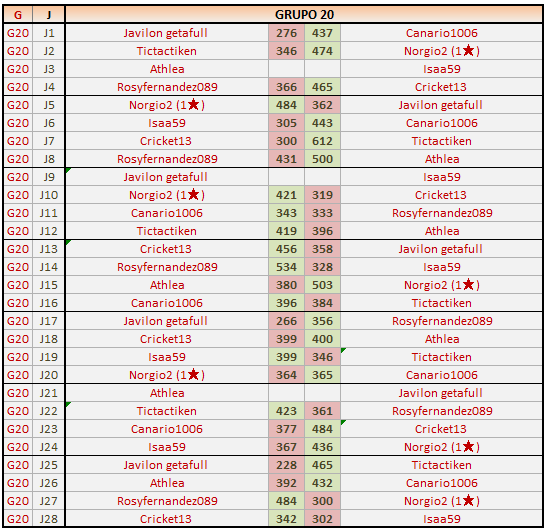 Deja un comentarioEn está página se irán publicando los resultados de las diferentes partidas, siendo ambos jugadores los responsables de subirlos, o comprobando que ya hayan sido subidos, insertando un COMENTARIO en la parte inferior de la pantalla (opción «Deja tu comentario«), indicando el nombre de los dos jugadores y los puntos obtenidos en la partida.