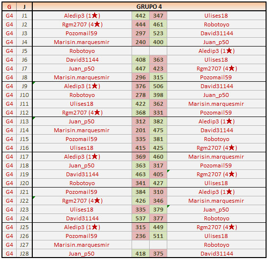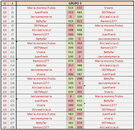 Deja un comentarioEn está página se irán publicando los resultados de las diferentes partidas, siendo ambos jugadores los responsables de subirlos, o comprobando que ya hayan sido subidos, insertando un COMENTARIO en la parte inferior de la pantalla (opción «Deja tu comentario«), indicando el nombre de los dos jugadores y los puntos obtenidos en la partida.