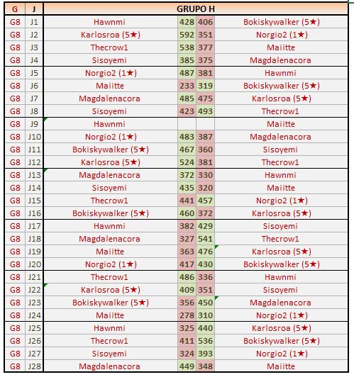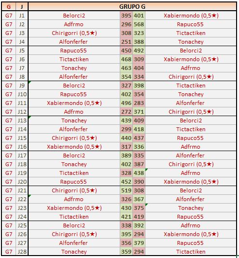 Deja un comentarioEn está página se irán publicando los resultados de las diferentes partidas, siendo ambos jugadores los responsables de subirlos, o comprobando que ya hayan sido subidos, insertando un COMENTARIO en la parte inferior de la pantalla (opción “Deja tu comentario“), indicando el nombre de los dos jugadores y los puntos obtenidos en la partida.
