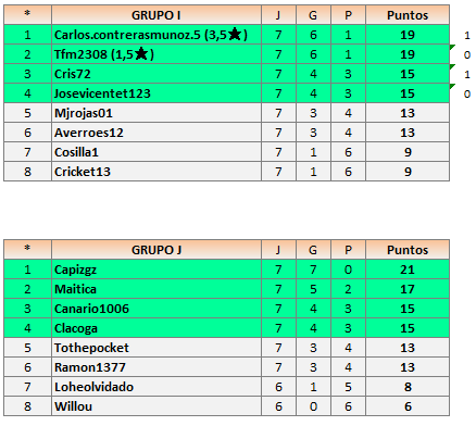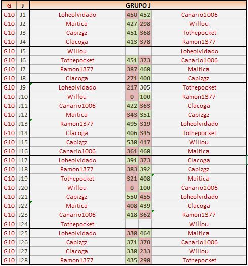Deja un comentarioEn está página se irán publicando los resultados de las diferentes partidas, siendo ambos jugadores los responsables de subirlos, o comprobando que ya hayan sido subidos, insertando un COMENTARIO en la parte inferior de la pantalla (opción “Deja tu comentario“), indicando el nombre de los dos jugadores y los puntos obtenidos en la partida.