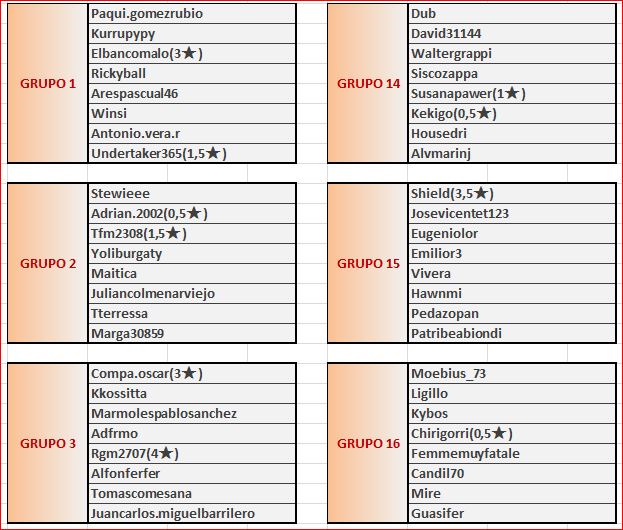 Inicio torneo: 1 MARZO (00.01)