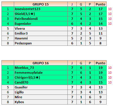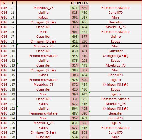 Deja un comentarioEn está página se irán publicando los resultados de las diferentes partidas, siendo ambos jugadores los responsables de subirlos, o comprobando que ya hayan sido subidos, insertando un COMENTARIO en la parte inferior de la pantalla (opción «Deja tu comentario«), indicando el nombre de los dos jugadores y los puntos obtenidos en la partida.