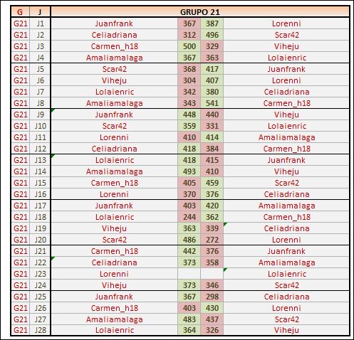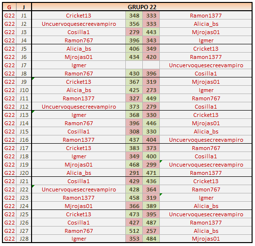 Deja un comentarioEn está página se irán publicando los resultados de las diferentes partidas, siendo ambos jugadores los responsables de subirlos, o comprobando que ya hayan sido subidos, insertando un COMENTARIO en la parte inferior de la pantalla (opción «Deja tu comentario«), indicando el nombre de los dos jugadores y los puntos obtenidos en la partida.
