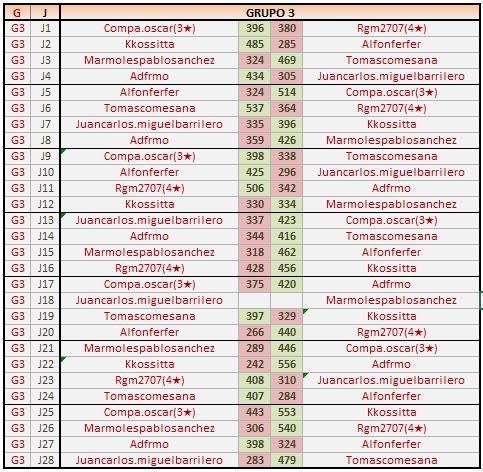 Deja un comentarioEn está página se irán publicando los resultados de las diferentes partidas, siendo ambos jugadores los responsables de subirlos, o comprobando que ya hayan sido subidos, insertando un COMENTARIO en la parte inferior de la pantalla (opción «Deja tu comentario«), indicando el nombre de los dos jugadores y los puntos obtenidos en la partida.