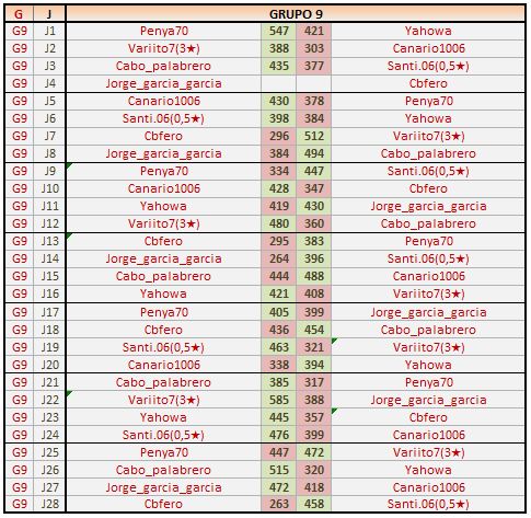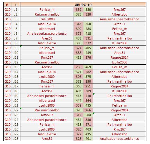 Deja un comentarioEn está página se irán publicando los resultados de las diferentes partidas, siendo ambos jugadores los responsables de subirlos, o comprobando que ya hayan sido subidos, insertando un COMENTARIO en la parte inferior de la pantalla (opción «Deja tu comentario«), indicando el nombre de los dos jugadores y los puntos obtenidos en la partida.