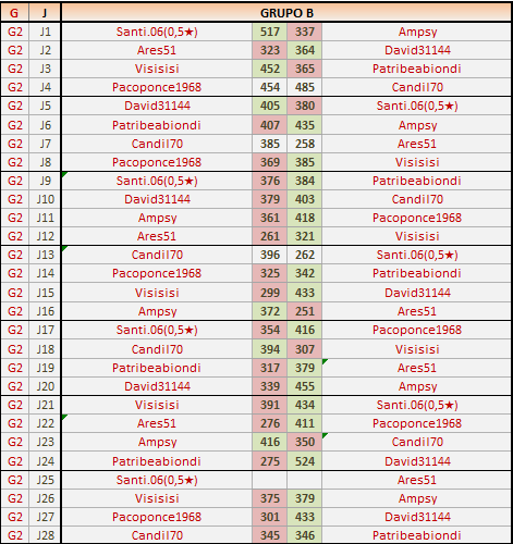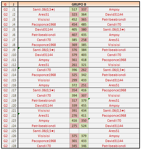 En está página se irán publicando los resultados de las diferentes partidas, siendo ambos jugadores los responsables de subirlos, o comprobando que ya hayan sido subidos, insertando un COMENTARIO en la parte inferior de la pantalla (opción «Deja tu comentario«), indicando el nombre de los dos jugadores y los puntos obtenidos en la partida.