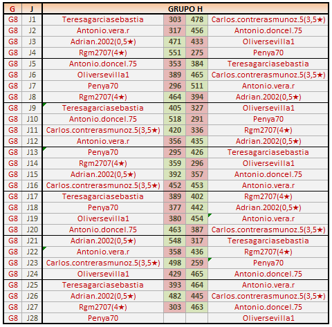 Deja un comentarioEn está página se irán publicando los resultados de las diferentes partidas, siendo ambos jugadores los responsables de subirlos, o comprobando que ya hayan sido subidos, insertando un COMENTARIO en la parte inferior de la pantalla (opción «Deja tu comentario«), indicando el nombre de los dos jugadores y los puntos obtenidos en la partida.