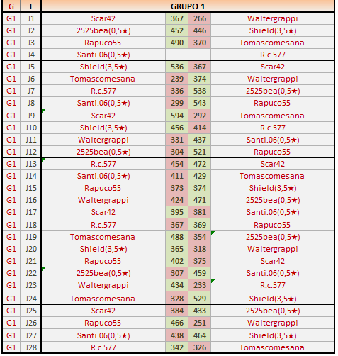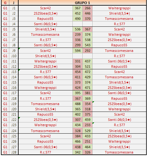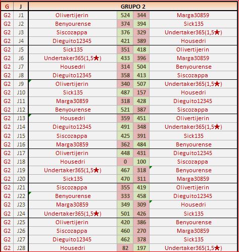 Deja un comentarioEn está página se irán publicando los resultados de las diferentes partidas, siendo ambos jugadores los responsables de subirlos, o comprobando que ya hayan sido subidos, insertando un COMENTARIO en la parte inferior de la pantalla (opción «Deja tu comentario«), indicando el nombre de los dos jugadores y los puntos obtenidos en la partida.