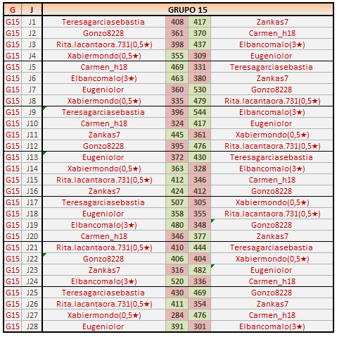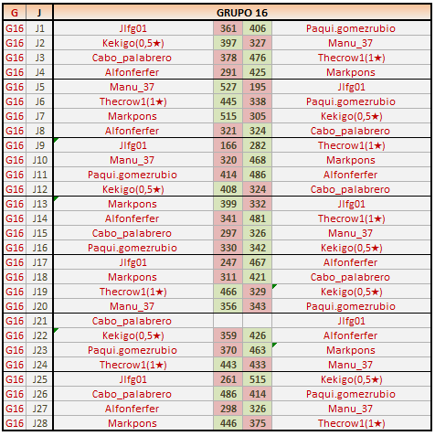 Deja un comentarioEn está página se irán publicando los resultados de las diferentes partidas, siendo ambos jugadores los responsables de subirlos, o comprobando que ya hayan sido subidos, insertando un COMENTARIO en la parte inferior de la pantalla (opción «Deja tu comentario«), indicando el nombre de los dos jugadores y los puntos obtenidos en la partida.