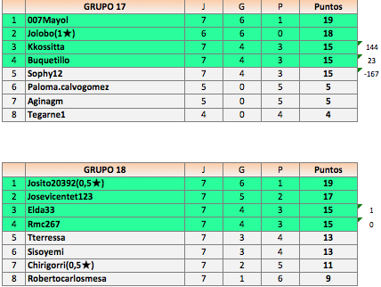 Deja un comentarioEn está página se irán publicando los resultados de las diferentes partidas, siendo ambos jugadores los responsables de subirlos, o comprobando que ya hayan sido subidos, insertando un COMENTARIO en la parte inferior de la pantalla (opción «Deja tu comentario«), indicando el nombre de los dos jugadores y los puntos obtenidos en la partida.