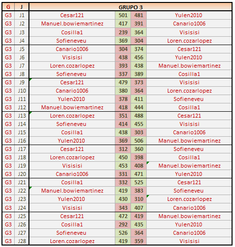 Deja un comentarioEn está página se irán publicando los resultados de las diferentes partidas, siendo ambos jugadores los responsables de subirlos, o comprobando que ya hayan sido subidos, insertando un COMENTARIO en la parte inferior de la pantalla (opción «Deja tu comentario«), indicando el nombre de los dos jugadores y los puntos obtenidos en la partida.