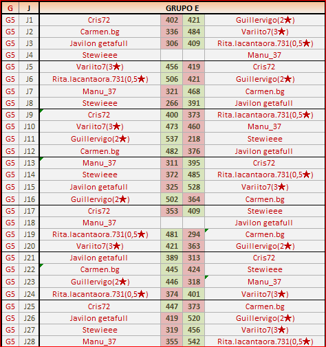 Deja un comentarioEn está página se irán publicando los resultados de las diferentes partidas, siendo ambos jugadores los responsables de subirlos, o comprobando que ya hayan sido subidos, insertando un COMENTARIO en la parte inferior de la pantalla (opción «Deja tu comentario«), indicando el nombre de los dos jugadores y los puntos obtenidos en la partida.