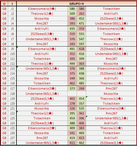 Deja un comentarioEn está página se irán publicando los resultados de las diferentes partidas, siendo ambos jugadores los responsables de subirlos, o comprobando que ya hayan sido subidos, insertando un COMENTARIO en la parte inferior de la pantalla (opción «Deja tu comentario«), indicando el nombre de los dos jugadores y los puntos obtenidos en la partida.