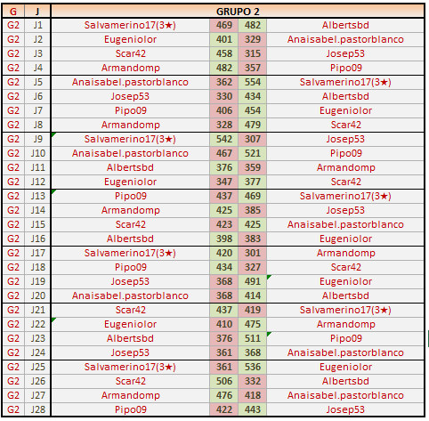 En está página se irán publicando los resultados de las diferentes partidas, siendo ambos jugadores los responsables de subirlos, o comprobando que ya hayan sido subidos, insertando un COMENTARIO en la parte inferior de la pantalla (opción «Deja tu comentario«), indicando el nombre de los dos jugadores y los puntos obtenidos en la partida.