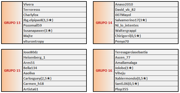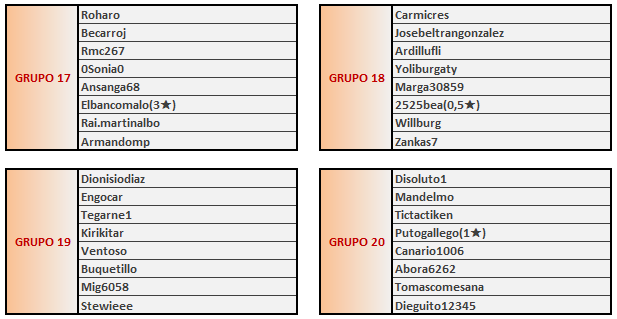 Inicio torneo: 20 ABRIL (00.00)