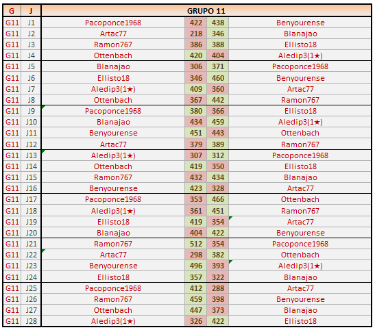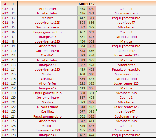 Deja un comentarioEn está página se irán publicando los resultados de las diferentes partidas, siendo ambos jugadores los responsables de subirlos, o comprobando que ya hayan sido subidos, insertando un COMENTARIO en la parte inferior de la pantalla (opción «Deja tu comentario»), indicando el nombre de los dos jugadores y los puntos obtenidos en la partida.