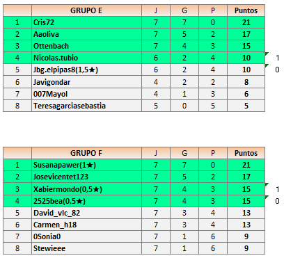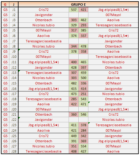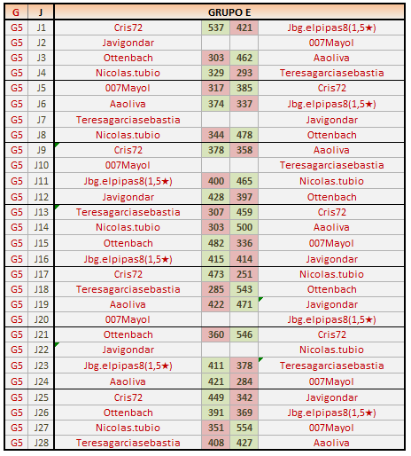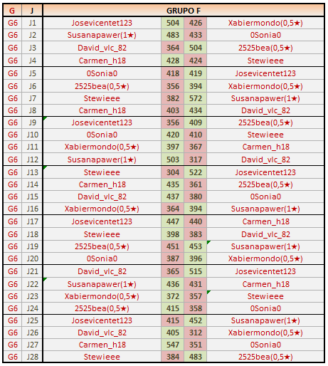 Deja un comentarioEn está página se irán publicando los resultados de las diferentes partidas, siendo ambos jugadores los responsables de subirlos, o comprobando que ya hayan sido subidos, insertando un COMENTARIO en la parte inferior de la pantalla (opción “Deja tu comentario“), indicando el nombre de los dos jugadores y los puntos obtenidos en la partida.