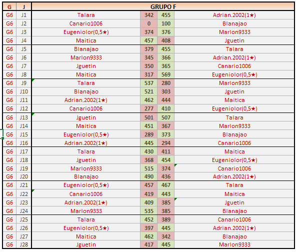 Deja un comentarioEn está página se irán publicando los resultados de las diferentes partidas, siendo ambos jugadores los responsables de subirlos, o comprobando que ya hayan sido subidos, insertando un COMENTARIO en la parte inferior de la pantalla (opción “Deja tu comentario“), indicando el nombre de los dos jugadores y los puntos obtenidos en la partida.