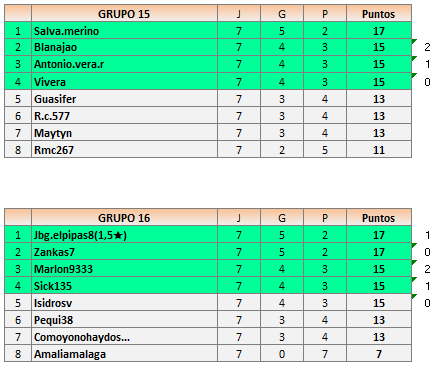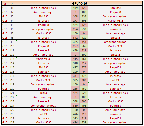 Rectificación en la clasificación del grupo 16 donde había un error