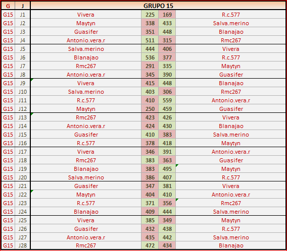 Deja un comentarioEn está página se irán publicando los resultados de las diferentes partidas, siendo ambos jugadores los responsables de subirlos, o comprobando que ya hayan sido subidos, insertando un COMENTARIO en la parte inferior de la pantalla (opción “Deja tu comentario”), indicando el nombre de los dos jugadores y los puntos obtenidos en la partida.
