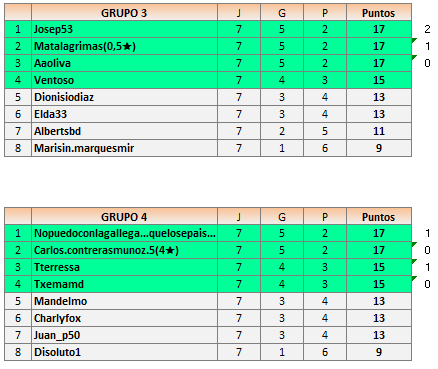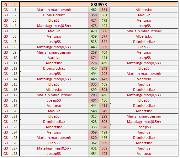 Deja un comentarioEn está página se irán publicando los resultados de las diferentes partidas, siendo ambos jugadores los responsables de subirlos, o comprobando que ya hayan sido subidos, insertando un COMENTARIO en la parte inferior de la pantalla (opción “Deja tu comentario”), indicando el nombre de los dos jugadores y los puntos obtenidos en la partida.