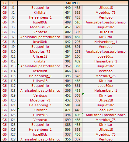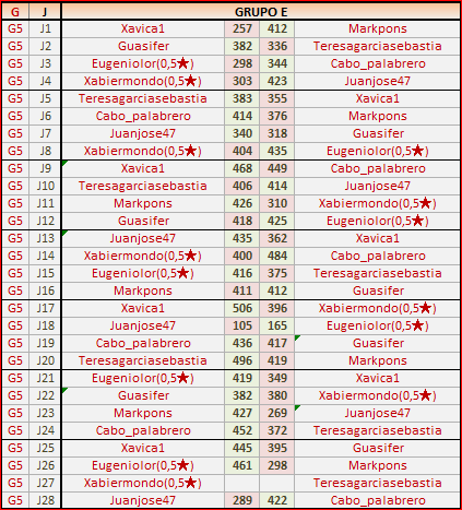 Deja un comentarioEn está página se irán publicando los resultados de las diferentes partidas, siendo ambos jugadores los responsables de subirlos, o comprobando que ya hayan sido subidos, insertando un COMENTARIO en la parte inferior de la pantalla (opción “Deja tu comentario“), indicando el nombre de los dos jugadores y los puntos obtenidos en la partida.