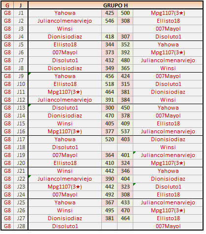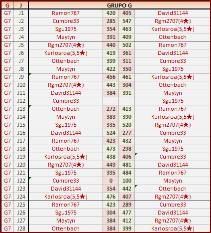Deja un comentarioEn está página se irán publicando los resultados de las diferentes partidas, siendo ambos jugadores los responsables de subirlos, o comprobando que ya hayan sido subidos, insertando un COMENTARIO en la parte inferior de la pantalla (opción “Deja tu comentario“), indicando el nombre de los dos jugadores y los puntos obtenidos en la partida.