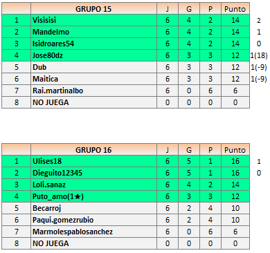 Deja un comentarioEn está página se irán publicando los resultados de las diferentes partidas, siendo ambos jugadores los responsables de subirlos, o comprobando que ya hayan sido subidos, insertando un COMENTARIO en la parte inferior de la pantalla (opción “Deja tu comentario“), indicando el nombre de los dos jugadores y los puntos obtenidos en la partida.