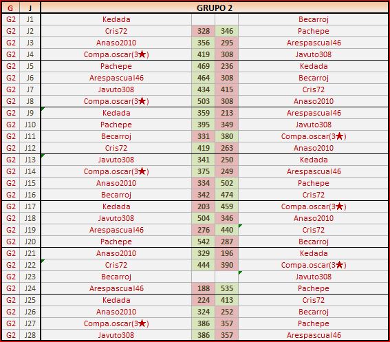 Deja un comentarioEn está página se irán publicando los resultados de las diferentes partidas, siendo ambos jugadores los responsables de subirlos, o comprobando que ya hayan sido subidos, insertando un COMENTARIO en la parte inferior de la pantalla (opción “Deja tu comentario“), indicando el nombre de los dos jugadores y los puntos obtenidos en la partida.