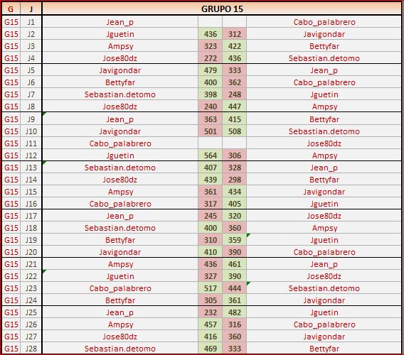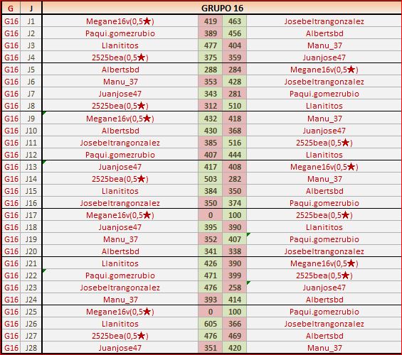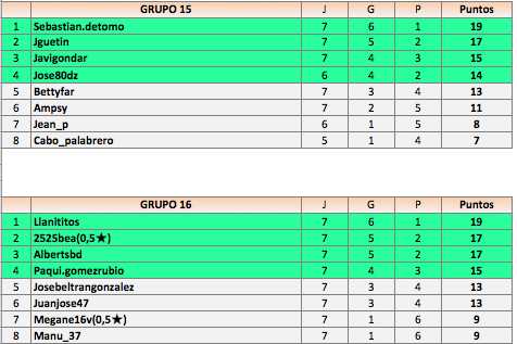 Deja un comentarioEn está página se irán publicando los resultados de las diferentes partidas, siendo ambos jugadores los responsables de subirlos, o comprobando que ya hayan sido subidos, insertando un COMENTARIO en la parte inferior de la pantalla (opción “Deja tu comentario“), indicando el nombre de los dos jugadores y los puntos obtenidos en la partida.