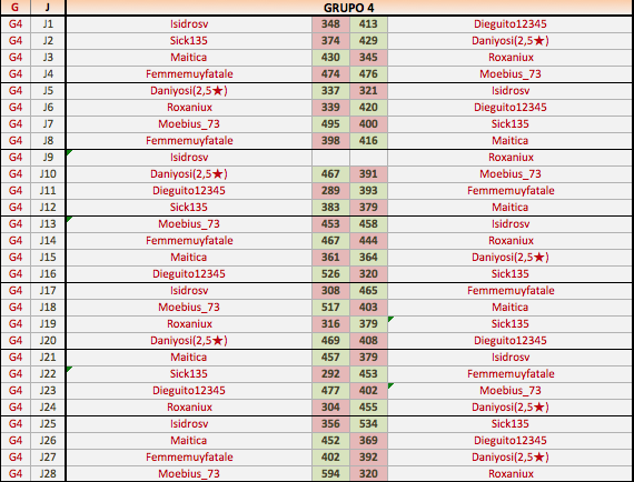 Deja un comentarioEn está página se irán publicando los resultados de las diferentes partidas, siendo ambos jugadores los responsables de subirlos, o comprobando que ya hayan sido subidos, insertando un COMENTARIO en la parte inferior de la pantalla (opción “Deja tu comentario“), indicando el nombre de los dos jugadores y los puntos obtenidos en la partida.