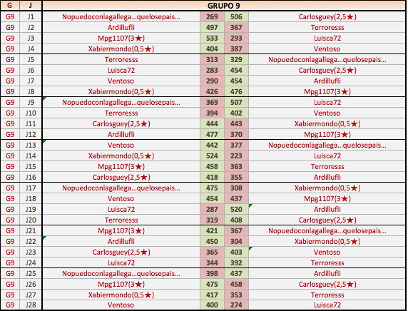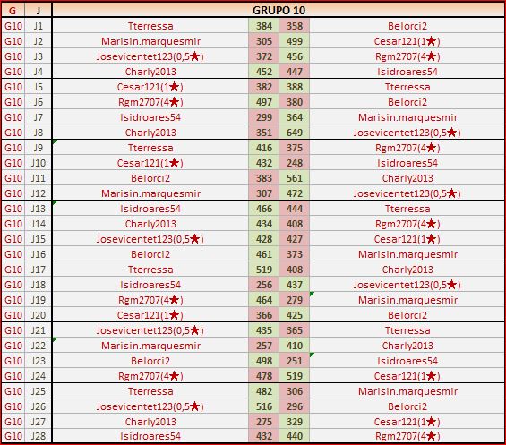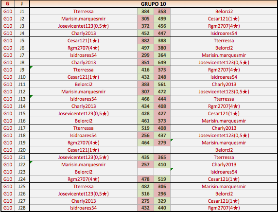 Deja un comentarioEn está página se irán publicando los resultados de las diferentes partidas, siendo ambos jugadores los responsables de subirlos, o comprobando que ya hayan sido subidos, insertando un COMENTARIO en la parte inferior de la pantalla (opción “Deja tu comentario“), indicando el nombre de los dos jugadores y los puntos obtenidos en la partida.